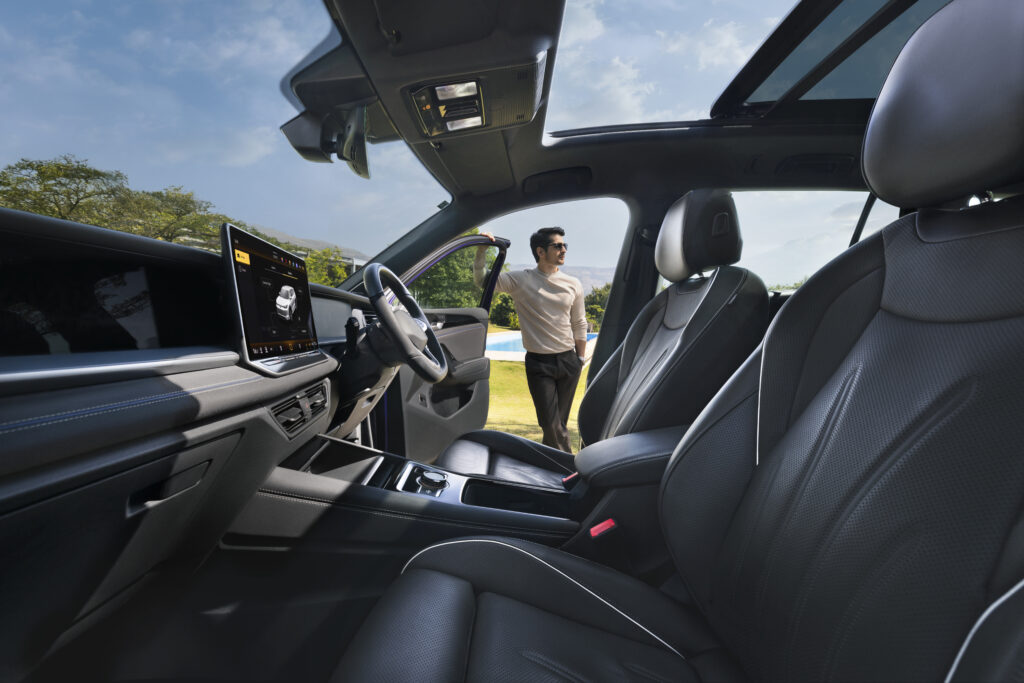 Step inside, and the cabin is where the Tayron really tries to impress. It gets a massive 15-inch infotainment screen, a 10.25-inch digital cockpit, AR HUD, and premium comfort features like 12-way electric seats with ventilation, memory and massage, along with 30-colour ambient lighting.