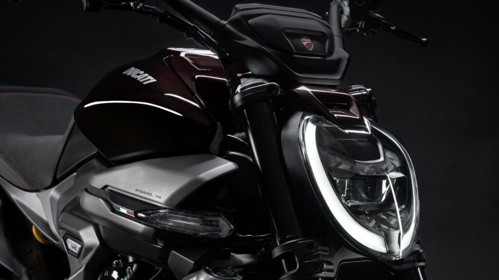 The XDiavel V4 retains its “long and low” silhouette but features more aggressive, supercar-inspired lines.