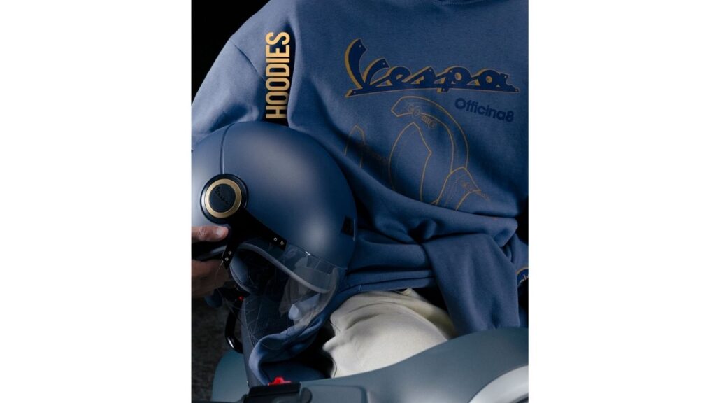 Vespa also rolled out matching accessories and a merchandise range. A colour-matched helmet comes as standard equipment with every Officina 8 scooter. A blue top box finished in the same blue theme as an option.